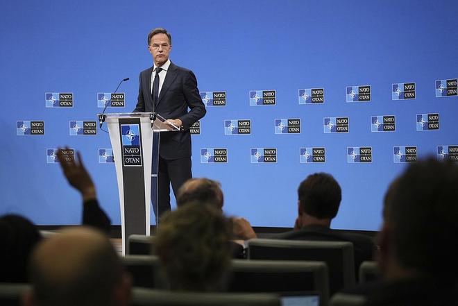 9月23日,比利时布鲁塞尔,北约秘书长吕特举行记者会 视觉中国