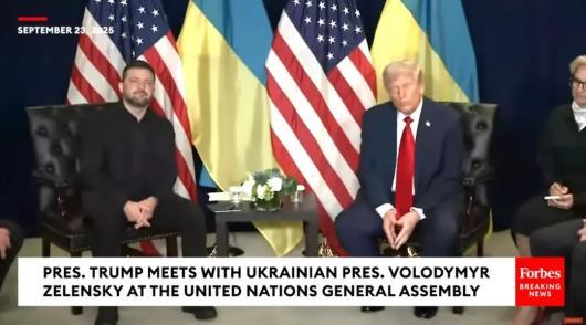 特朗普在23日会见了来到纽约参加联合国大会的泽连斯基(美媒视频截图)