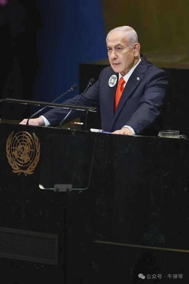 当地时间9月26日上午,以色列总理内塔尼亚胡在第80届联合国大会一般性辩论发言。