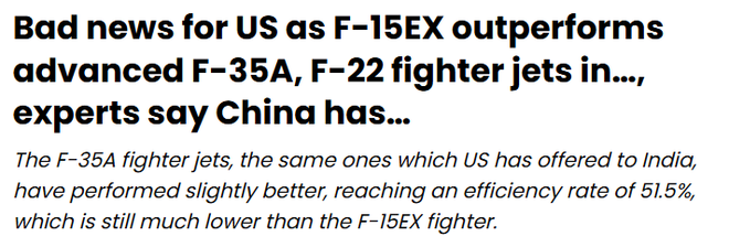 接受《环球时报》记者采访的专家认为,从性能上看,F-35是全球公认的第五代战斗机之一,虽然没有超音速巡航能力,但凭借先进的隐形性能和强大的电子战设备,在近年的几次局部冲突中印证了其作战能力,也是多国空军的空中战力核心。该战斗机面临的主要问题来自美国军工利益复合体的过度贪婪。F-35战斗机项目从研制以来就在工期延误、成本超支和研制方面的技术挑战等问题上饱受严厉批评。美国总统特朗普早在2016年第一届总统任期内就批评F-35项目“失去控制”。根据美国空军与洛克希德·马丁公司签署的协议,该战斗机的知识产权归后者所有,美军无权自行维护或通过委托第三方企业进行生产的方法来提升备件产量。美国政府问责办公室的报告称,F-35凭借先进能力使其成为美国军火库中的强大武器,但如果因为维护和保养问题而无法起飞,“这种宝贵的优势就没有好处”。2023年时任美国空军部长肯德尔批评称,美军没有从洛克希德·马丁公司得到所有战斗机维护数据的权力是根本性错误。他强调称:“从根本上说,这是在制造长期垄断。我花了很多年的时间努力克服(F-35项目上的)采购失当。”
