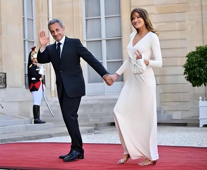 图为萨科齐和第三任妻子卡拉·布吕尼