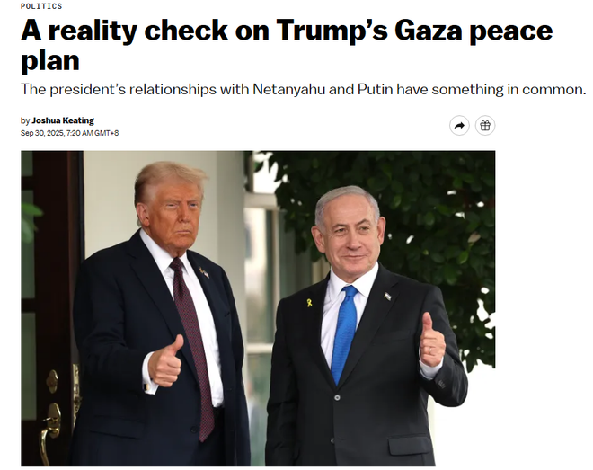 还是在9月30日,美国新闻网站VOX的报道指出,特朗普依赖个人关系推动和平的方式"效果存疑",加沙冲突真正走向终结"仍需时日"。