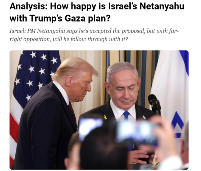 第二,内塔尼亚胡与特朗普之间并非"毫无嫌隙"。虽然内塔尼亚胡"无意也无力"正面反对特朗普提出的主张。但这并不代表两人之间毫无分歧,特别是在以色列空袭卡塔尔的问题上。同时,内塔尼亚胡不可能无视国内极右翼政治力量要求在加沙"屏蔽"巴勒斯坦权力机构的诉求,因为极右翼力量随时可以要求解散政府。