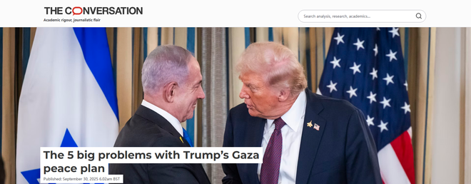 9月30日,澳大利亚国立大学中东问题学者伊恩·帕米特在澳大利亚言论网站"对话"(The conversation)刊文,直言特朗普提出的"加沙和平方案"因存在"五大问题"而面临多重实施困境。