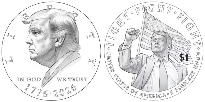 据报道,负责监督美国造币厂的财政部官员布兰登·比奇证实,特朗普纪念硬币草案“真实存在”。根据草案,硬币的一面刻有特朗普的侧面头像与1776至2026年(美国建国250周年)标识,另一面则刻有特朗普在2024年宾夕法尼亚州总统竞选集会上遭遇刺杀未遂时他摆出的动作,以及他遭袭后对支持者喊出的口号。
