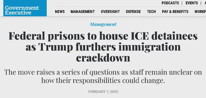 《独立报》给出的一组数据显示,在特朗普于1月20日上任后的10天里,平均每天被ICE人员抓走的人数高达700多人,是拜登时期的1倍多——以至于ICE的看守所都装不下了,不得不让美国的监狱系统帮忙关人。