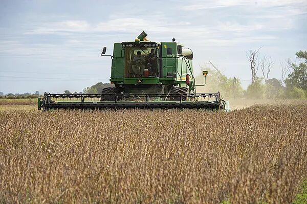 阿根廷农民收割秋季大豆