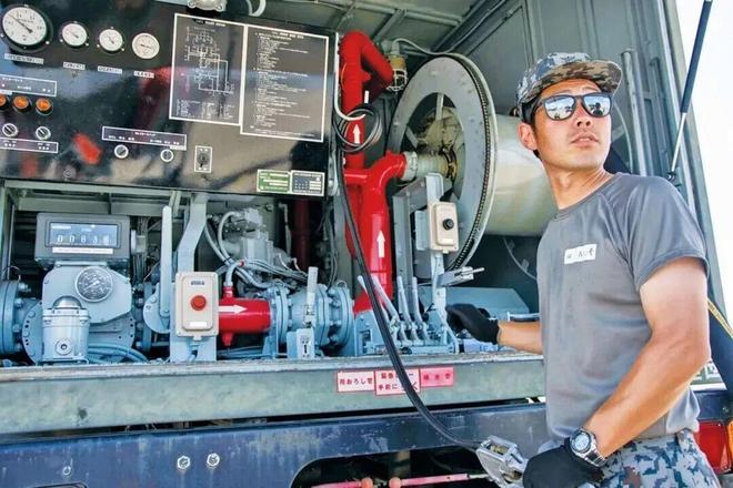 日本自卫队人员在为美军F-35战斗机加油(来源:中国国防报)