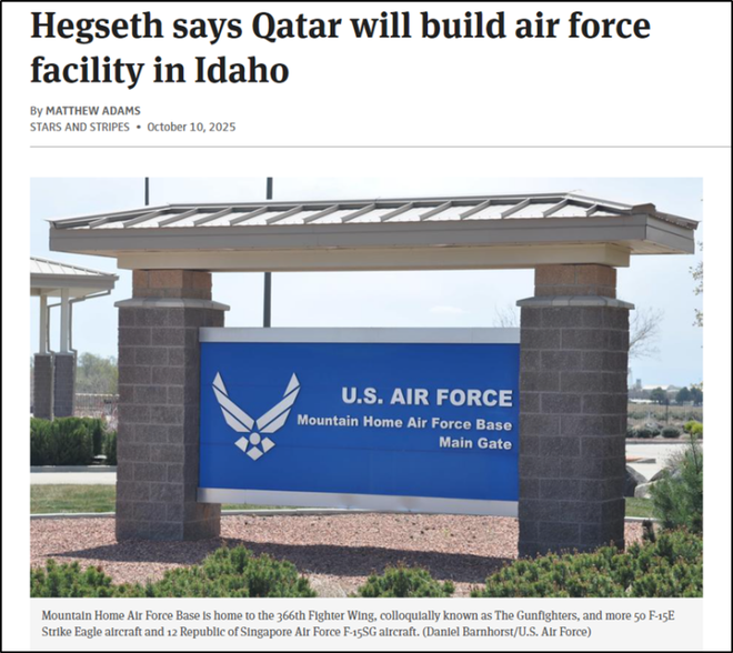 以这次准备设立卡塔尔相关设施的芒廷霍姆空军基地为例,其原本已经容纳了一个新加坡战斗机中队。