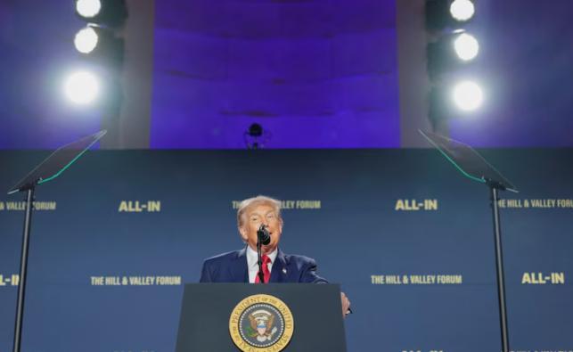 7月23日,特朗普在华盛顿就人工智能议题发表讲话 图自外媒