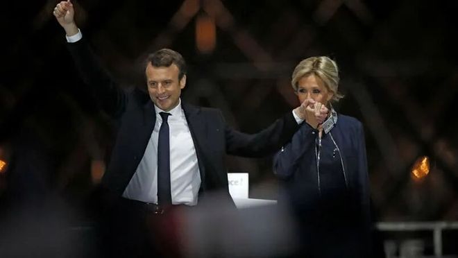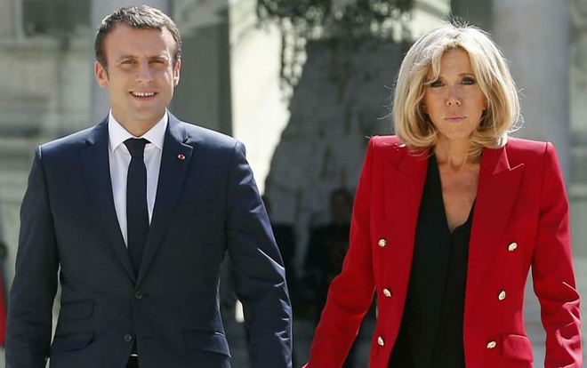 法国总统埃马纽埃尔·马克龙与夫人布丽吉特·马克龙(右)