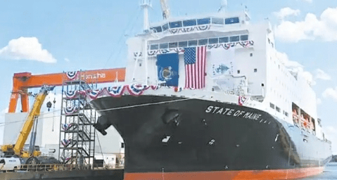 当地时间8月26日,美国国家安全多任务船“缅因州”号命名仪式在韩华费城造船厂举行