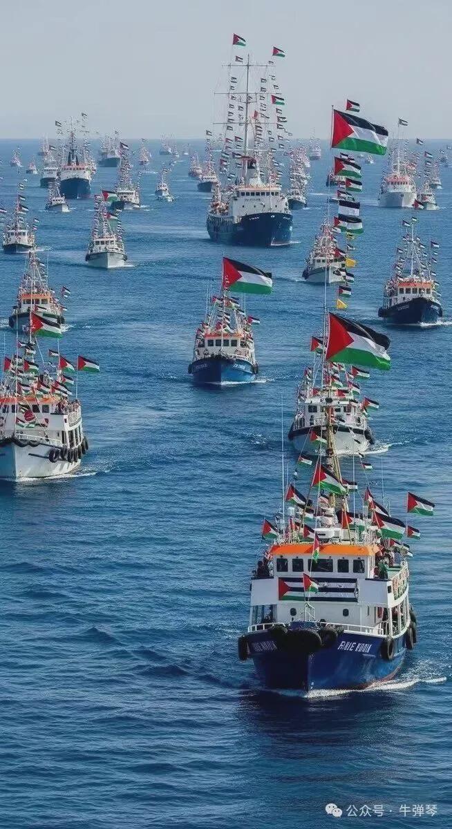 40多条渔船、游艇,载着加沙急需的药品、粮食等紧急物资,浩浩荡荡驶向加沙海域,试图突破以色列的海上封锁。