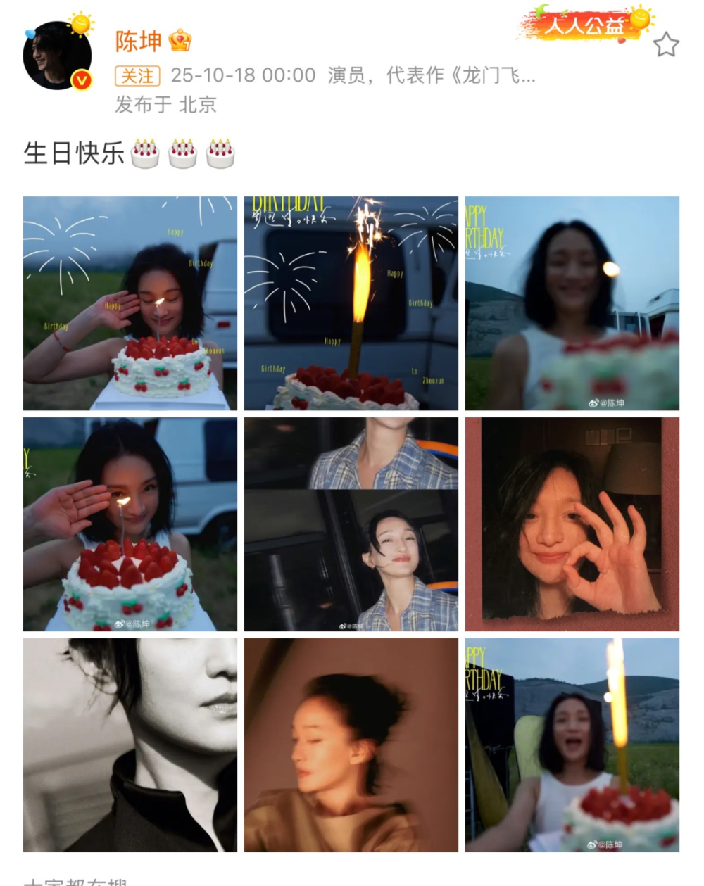 51岁周迅晒多张庆生美图,陈坤连续16年卡点送祝福