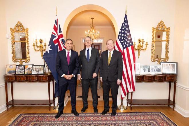 资料图:此前,澳大利亚国库部长查默斯与美国财政部长贝森特、白宫国家经济委员会主任哈塞特会面 澳大利亚广播公司