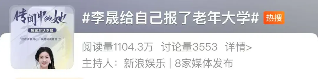 谈到低谷期,她说“不要放弃自己,一定要救自己。”采访中还提到,李晟曾在老年大学给自己报班,相关话题#李晟给自己报了老年大学在登上热搜,引发网友热议。