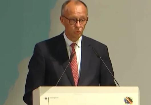 默茨8日在柏林一场活动上发表讲话 视频截图