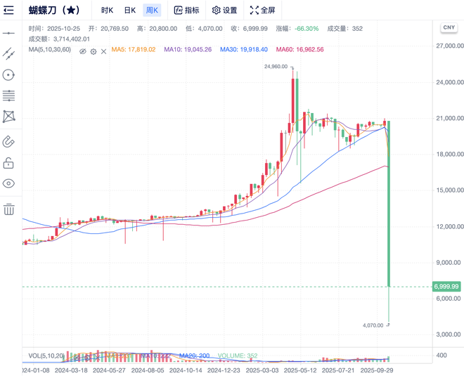 一把“蝴蝶刀”在两天内从20719跌到5280,跌幅近75%