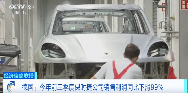 据央视财经,当地时间24日,德国大众集团旗下保时捷汽车公司发布的最新数据显示,公司第三季度亏损达9.66亿欧元、约合人民... 据央视财经,当地时间24日,德国大众集团旗下保时捷汽车公司发布的最新数据显示,公司第三季度亏损达9.66亿欧元、约合人民币80亿元,受此影响,今年前三季度其销售利润同比大幅下滑99%。