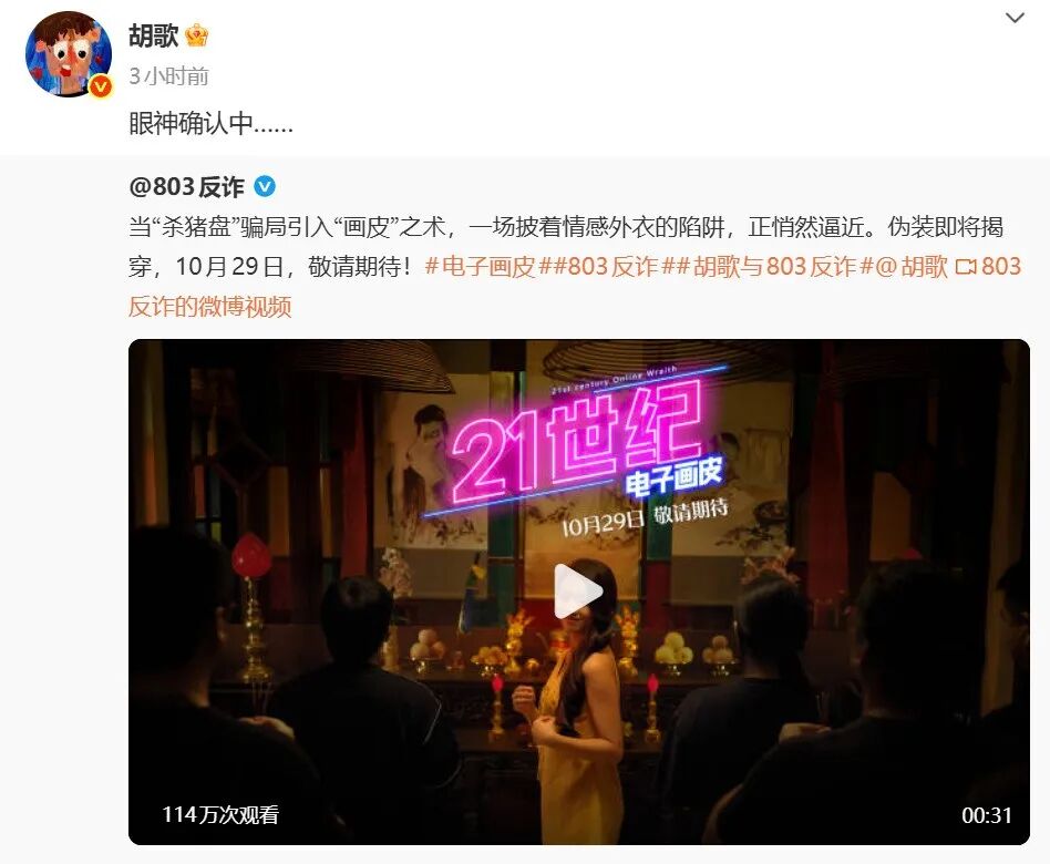 今天(10月27日)上海市公安局发布反诈主题微电影《 21 世纪电子画皮》的预告片光看预告片就很吸引人了↓↓↓短短的几个... 今天(10月27日)