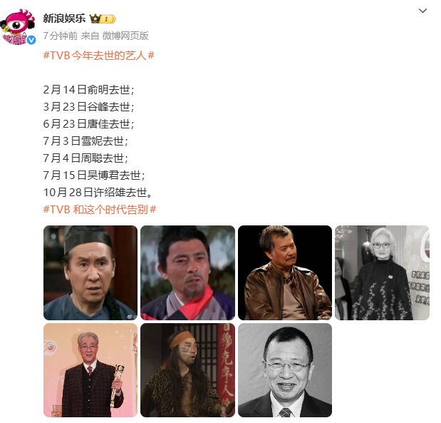 TVB官方微博发文悼念:青山远行,艺影长存。
