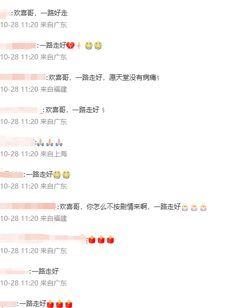 在许绍雄的微博下,众多网友留言悼念:欢喜哥,一路走好。