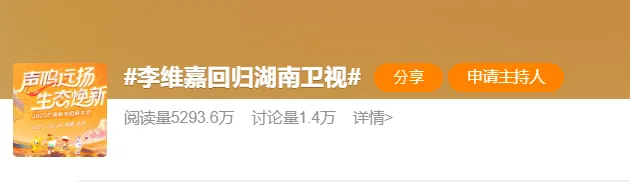 10月28日,湖南卫视官方在“2025芒果秋季招商大会”发布欢迎动态,配文“好久不见,欢迎回家”,正式确认主持人李维嘉回... 10月28日,湖南卫视官方在“2025芒果秋季招商大会”发布欢迎动态,配文“好久不见,欢迎回家”,正式确认主持人李维嘉回归湖南卫视。