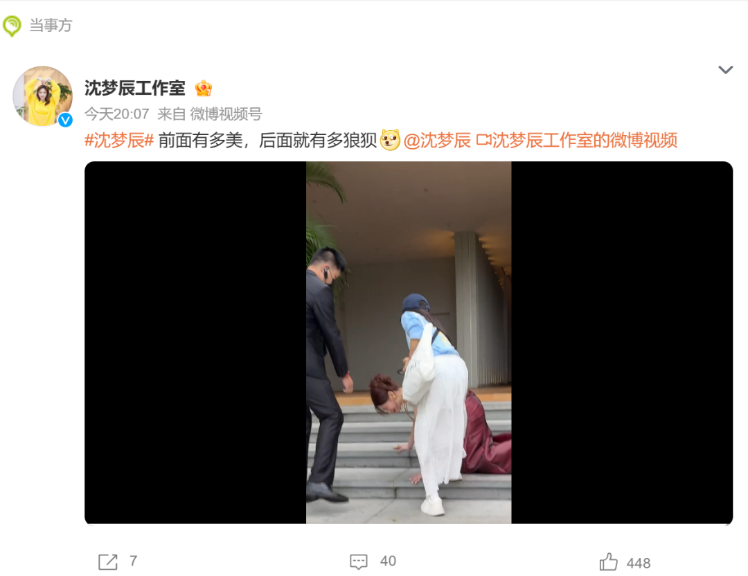 10月29日,沈梦辰在公开活动中下楼梯时意外摔倒,画面引发广泛关注。其工作室发文: 前面有多美,后面就有多狼狈。随后,沈...    10月29日,沈梦辰在公开活动中下楼梯时意外摔倒,画面引发广泛关注。其工作室发文: 前面有多美,后面就有多狼狈。