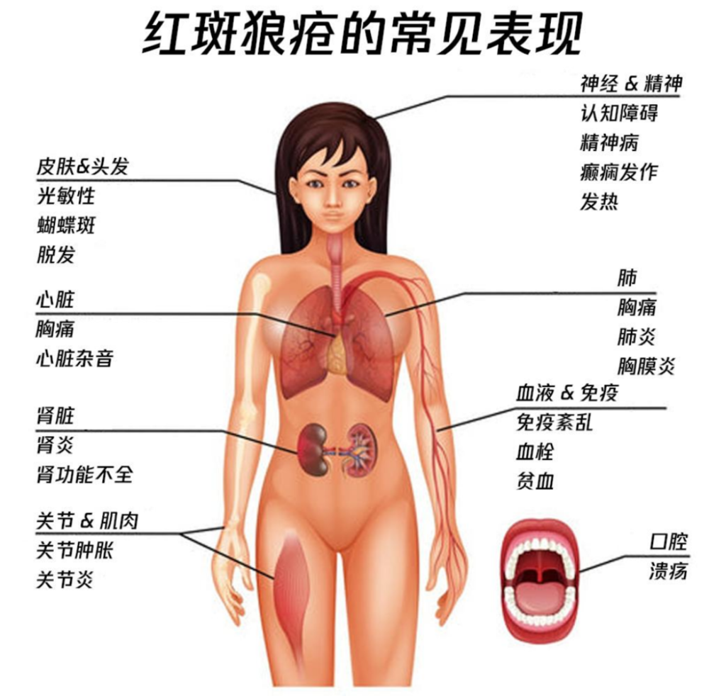 作为一种自身免疫性疾病,系统性红斑狼疮与自身免疫功能紊乱息息相关。简单来说,就是患者体内多出了多种本来并不应该存在的抗体,而这些抗体并非善类,它们会损害患者身体的系统、脏器和组织。临床上,患者主要表现为全身发热、皮肤出现蝶形红斑及斑丘疹、关节肿痛、肾脏受损,晚期可发展为尿毒症,是最常见的死亡原因之一。