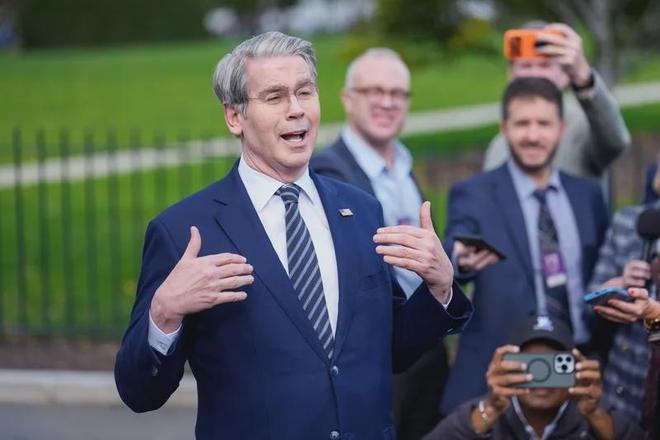 当地时间2025年10月22日,美国财政部长斯科特·贝森特在华盛顿特区白宫西翼外接受记者采访