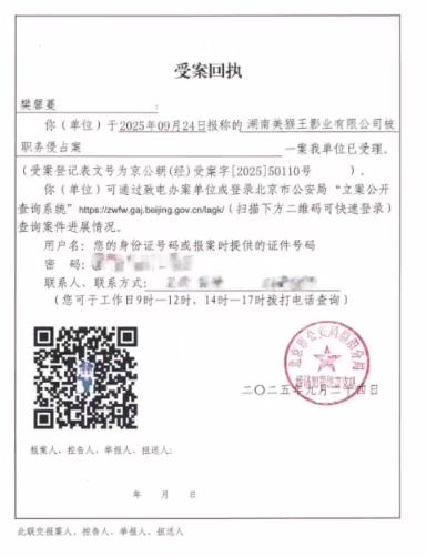 该工作人员称,湖南美猴王影业于2025年9月在北京公安朝阳分局经侦大队报案,提供了张纪中涉嫌职务侵占的全部证据,金额巨大。朝阳警方对此案非常重视,多次调查,已经受理此案,目前正在案件侦查中。