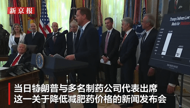 11月6日,美国华盛顿特区,一男子在白宫举行的新闻发布会上突然晕倒。当日特朗普与多名制药公司代表出席这一关于降低减肥药价... 11月6日,美国华盛顿特区,一男子在白宫举行的新闻发布会上突然晕倒。当日特朗普与多名制药公司代表出席这一关于降低减肥药价格的新闻发布会。礼来公司首席执行官里克斯发言时,他身后一男子晕倒,多人上前搀扶。