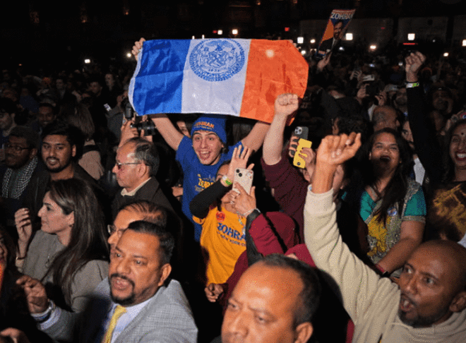 11月4日晚,纽约市民庆祝马姆达尼胜选