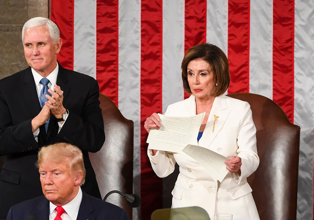 2020年佩洛西撕毁特朗普国情咨文演讲稿 图源:美媒