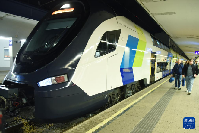 这是11月3日在奥地利维也纳拍摄的由中国中车株洲电力机车有限公司生产的双层列车(新华社记者 贺灿铃 摄)