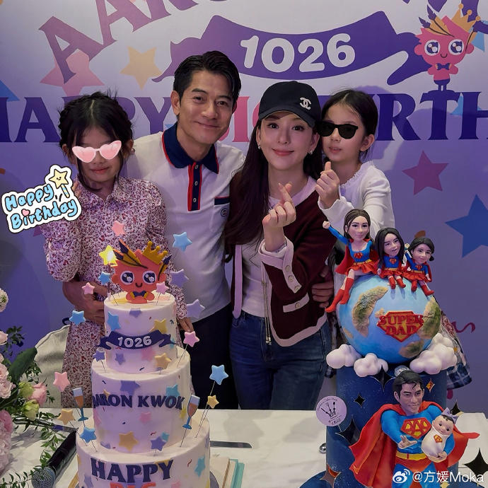 方媛与女儿们为郭富城庆祝60岁生日 图据方媛微博