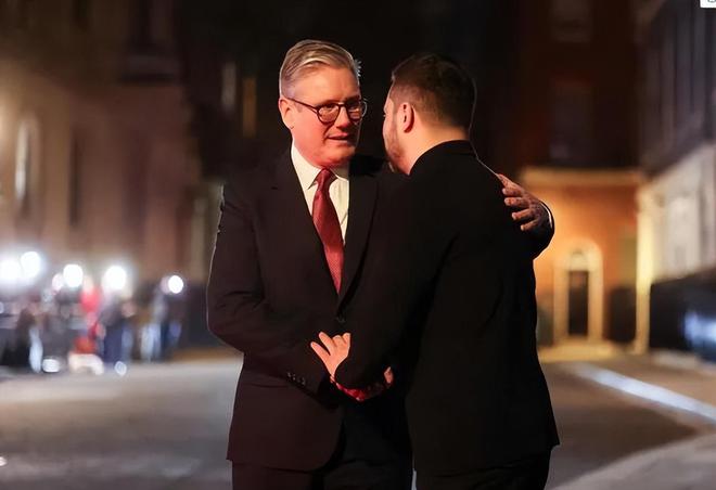 在伦敦,在唐宁街10号英国首相官邸门口,英国首相斯塔默与他相拥,抱得比老早任美国总统时候的拜登、任爱沙尼亚总理时候的卡娅·卡拉斯都紧。且英国甩出了22.6亿英镑的支票——当然是贷款,要还的!