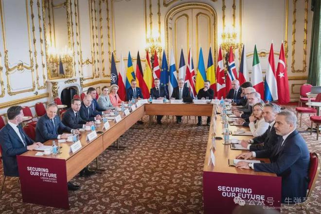 在欧洲,同一天,欧洲领导人紧张地在伦敦开会,商讨对策。我看到,中间端坐三人,左边是法国总统马克龙,中间是英国首相斯塔默,右边是乌克兰总统泽连斯基。