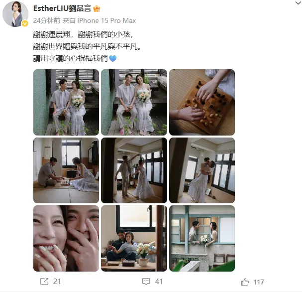 据此前报道,今年6月9日,刘品言与连晨翔官宣结婚,女方已有身孕。