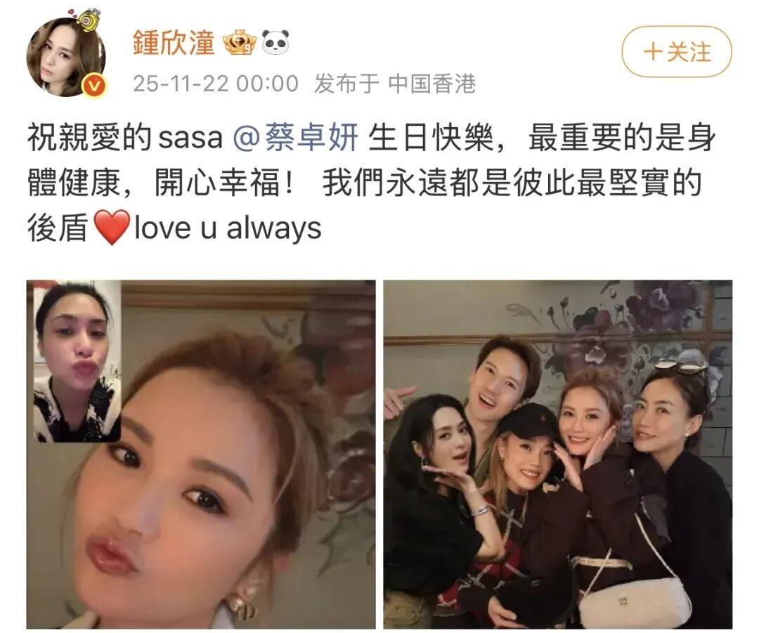 而钟欣潼在11月22日0:00分卡点为好姐妹送上生日祝福,并配文“身体健康,开心幸福”,并强调“彼此是最坚实的后盾”,文末附“love u always”。