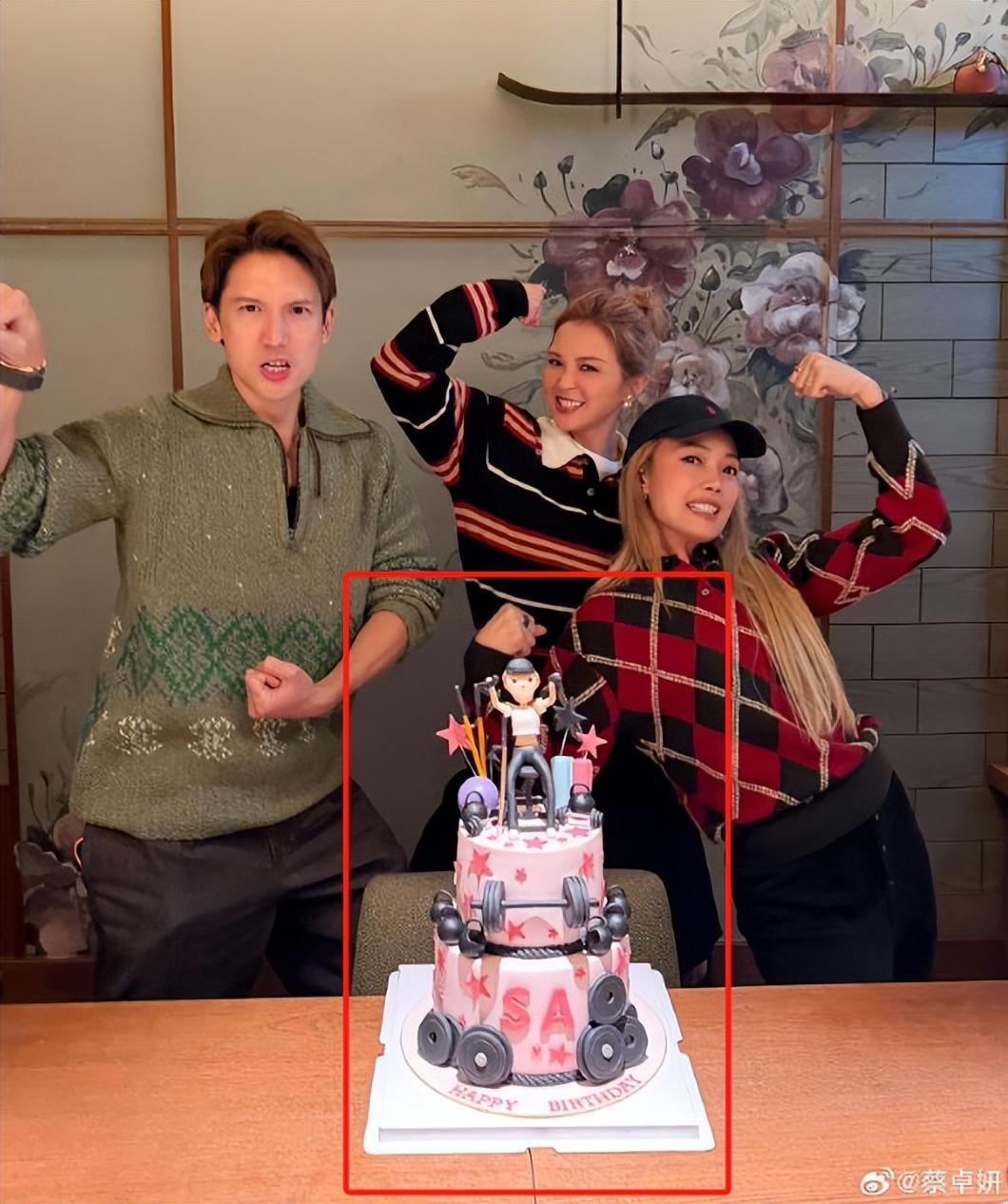 容祖儿、关智斌还定制了“健身主题”多层蛋糕,装饰阿Sa健身造型的Q版公仔,呼应她近年热衷运动的生活状态。