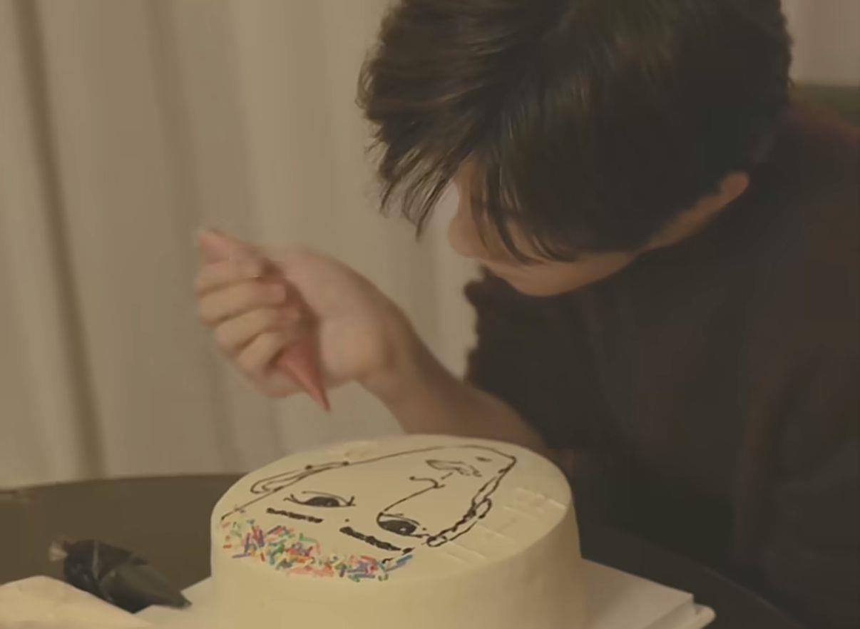 易烊千玺工作室发布的视频素材显示,这个蛋糕的正面造型由易烊千玺独立创作完成。他用奶油绘制了自己的自画像,附上了一颗“心”,还写上“二十五”。