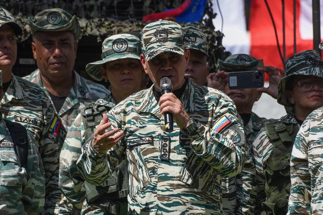 10月4日,在委内瑞拉首都加拉加斯的玻利瓦尔广场,委内瑞拉国防部长洛佩斯发表讲话 新华社发(马科斯·萨尔加多摄)