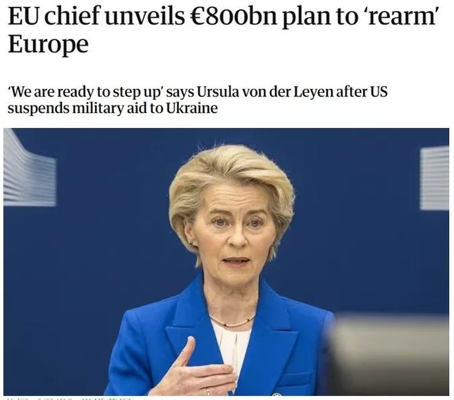 在日前举行的欧盟特别峰会上,欧洲理事会同意由欧盟委员会主席冯德莱恩提出的“重新武装欧洲”计划。