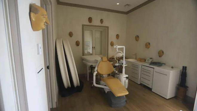 在室内的一面墙上,挂着一些较为诡异的面具。室内还有牙医椅子等等——尽管有说法爱泼斯坦有一位牙医女友,但这椅子仍让从未涉足其间的受众,不乏各种浮想联翩。