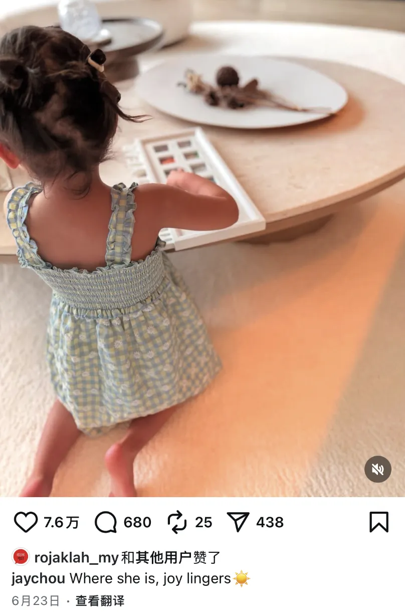 此前周杰伦还晒出小女儿Jacinda的背影,配文:她在哪里,欢乐就在哪里。