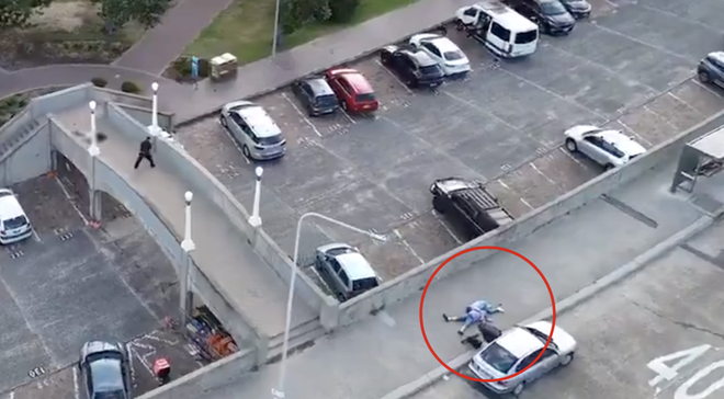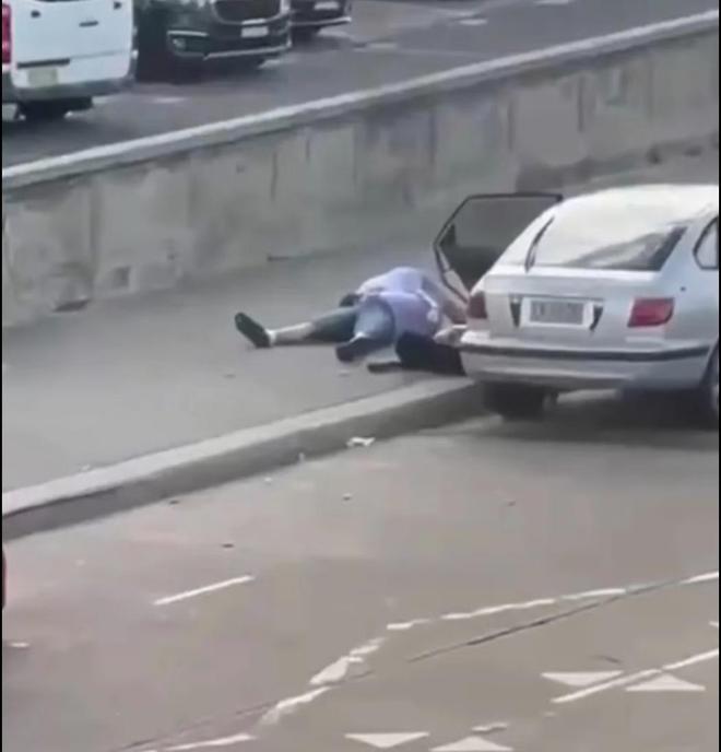Jenny的行车记录仪拍下了这一幕,她在社交媒体上表示,她最初听到了三声巨响,误以为是烟花。她写道,当她试图找到噪音的来源时,她所看到的景象让她脊背发凉。“一辆车门大开的汽车里,一个老年男子和一个中年男子在地上扭打在一起,”她说。