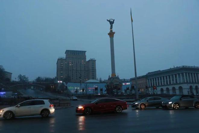 11月20日,乌克兰首都基辅主要街道的照明设施出现大面积停电,车辆在暮色中驶过独立广场 图:新华社