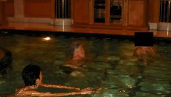 其中一组照片显示,克林顿、爱泼斯坦助手麦克斯韦和另一名面部被遮挡者在游泳池中同框;另一张则拍到克林顿与一名面部被遮挡者同坐在热水浴缸中。