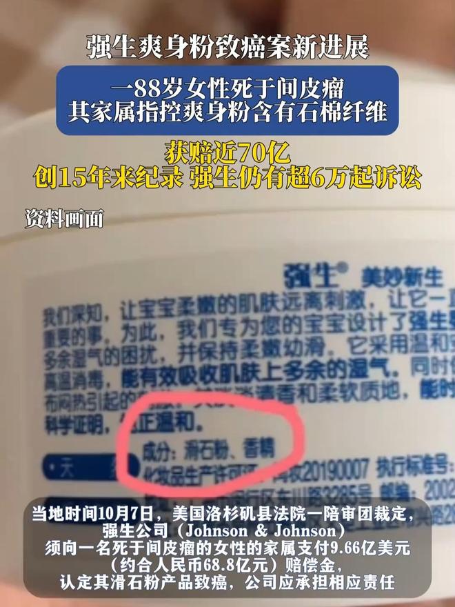 强生爽身粉致癌案新进展:被判向一患癌女子赔偿110亿元,创15年来纪录!后面还有超6.7万起诉讼